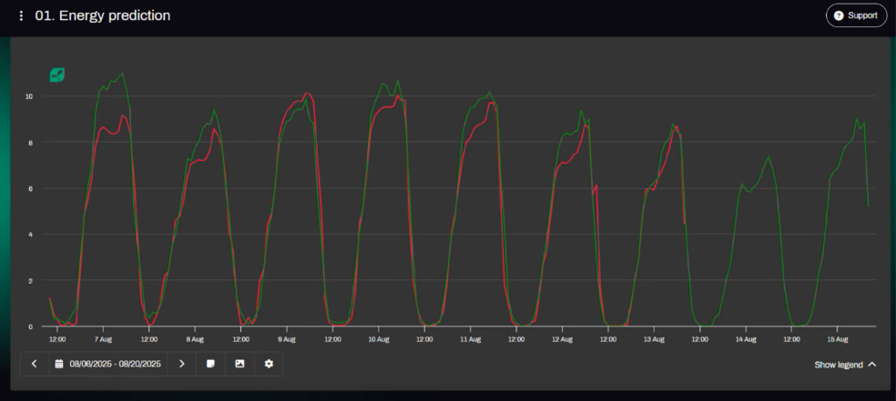 Energy Predictions are shown in the LetsGrow module, alongside actual energy demand: