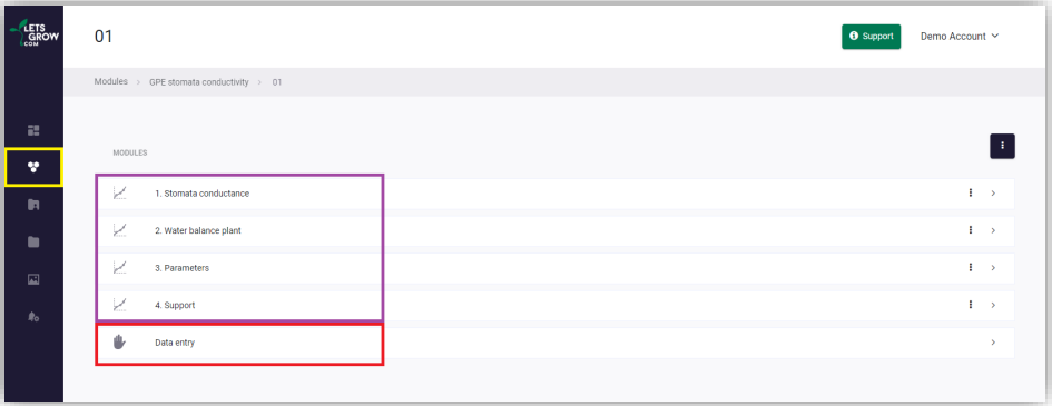 yellow), then click GPE stomata conductivity, which allows you to select a department. Clicking