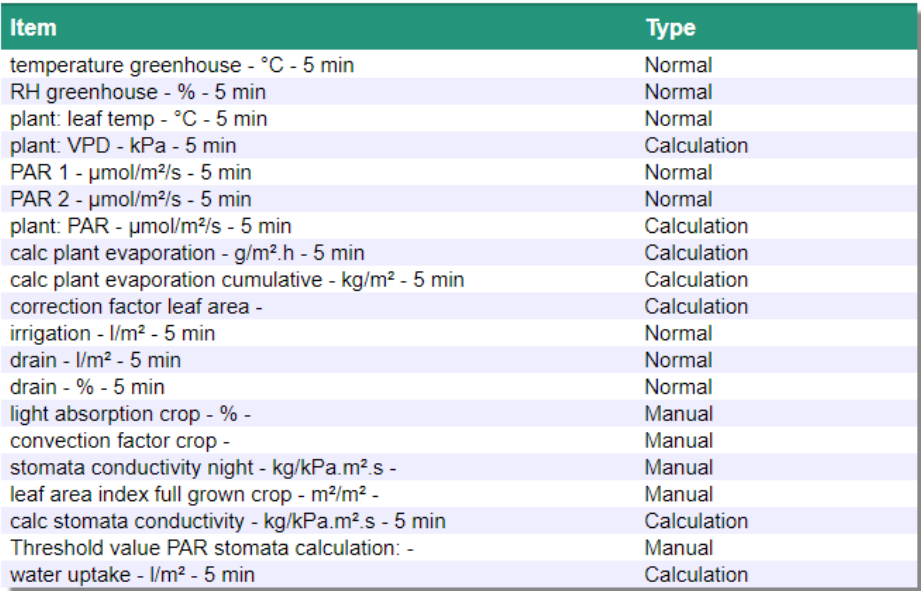 3.2.1 Table for stomata sensor / module parameters