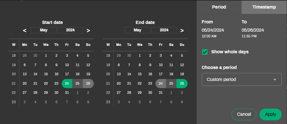 You can also directly select a predefined period by clicking on "Custom period". This will give you a list of standard period options to choose from.