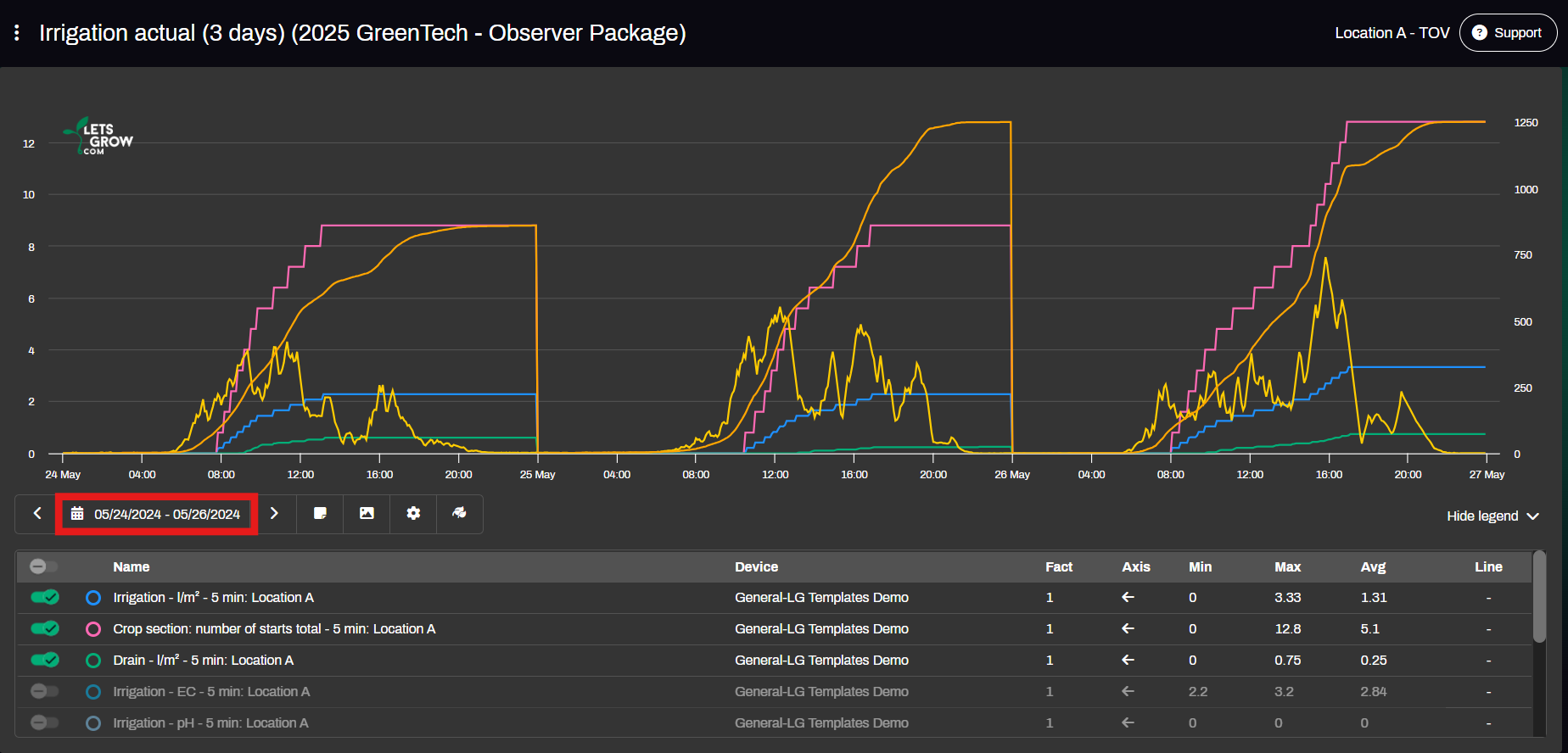 If you set a period from 01-01-2024 to 01-01-2025, the chart will shift forward by one year.