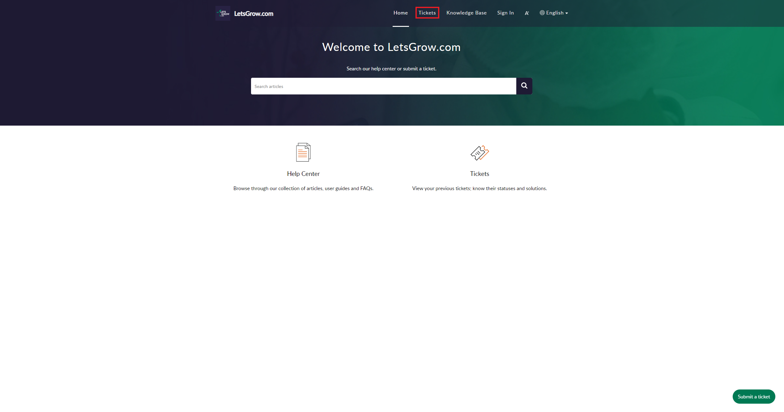 In order to view your submitted tickets (also refered to as "ticket history") you will have to go to the customer portal of LetsGrow.com by clicking the following link: