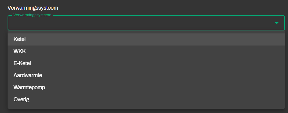 Het verwarmingssysteem moet ook worden geselecteerd. Dit is het systeem dat warmte levert aan je teeltcompartiment. Je kunt meerdere systemen selecteren in het dropdownmenu. Als je meer dan één systeem selecteert, wordt aangenomen dat ze gelijkmatig worden gebruikt in je strategie. Als je de exacte verwarmingsrendement van je ketelhuis weet, kun je het beste alleen “Overig” selecteren en het exacte rendement invullen (op te halen uit je historische gegevens).
