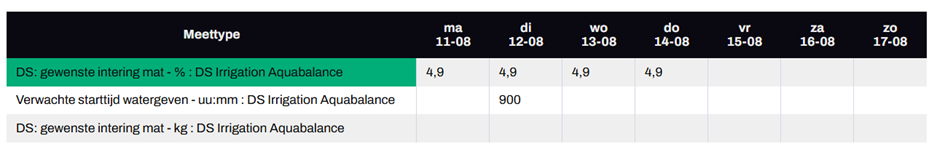 Elke ochtend wordt er automatisch gecontroleerd of er gisteren een doel is ingesteld. Als dat het geval is, wordt dat doel automatisch overgenomen voor vandaag. Je hoeft dus alleen een nieuw doel in te voeren wanneer je het gewenste droogvaldoel wilt aanpassen.