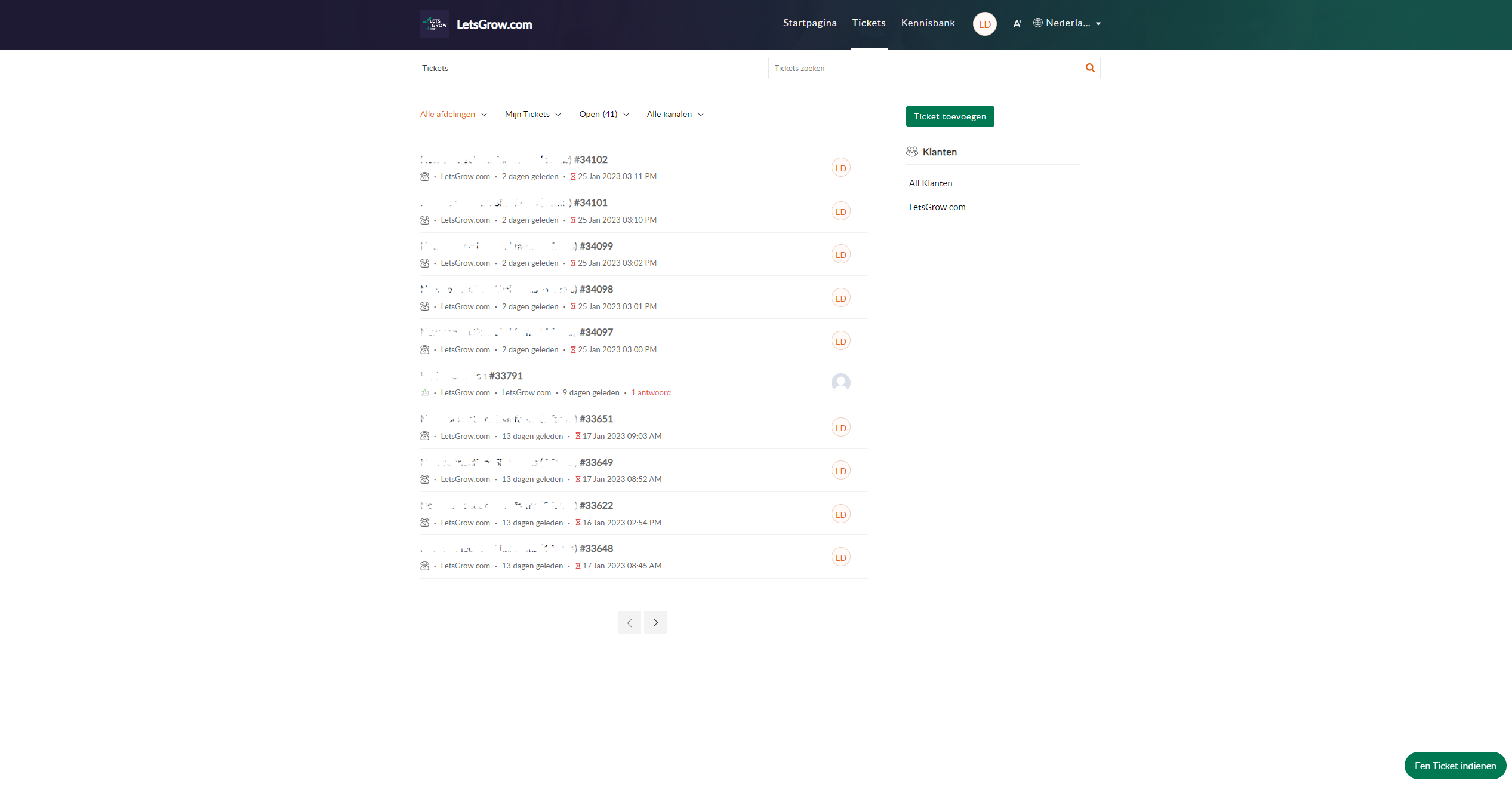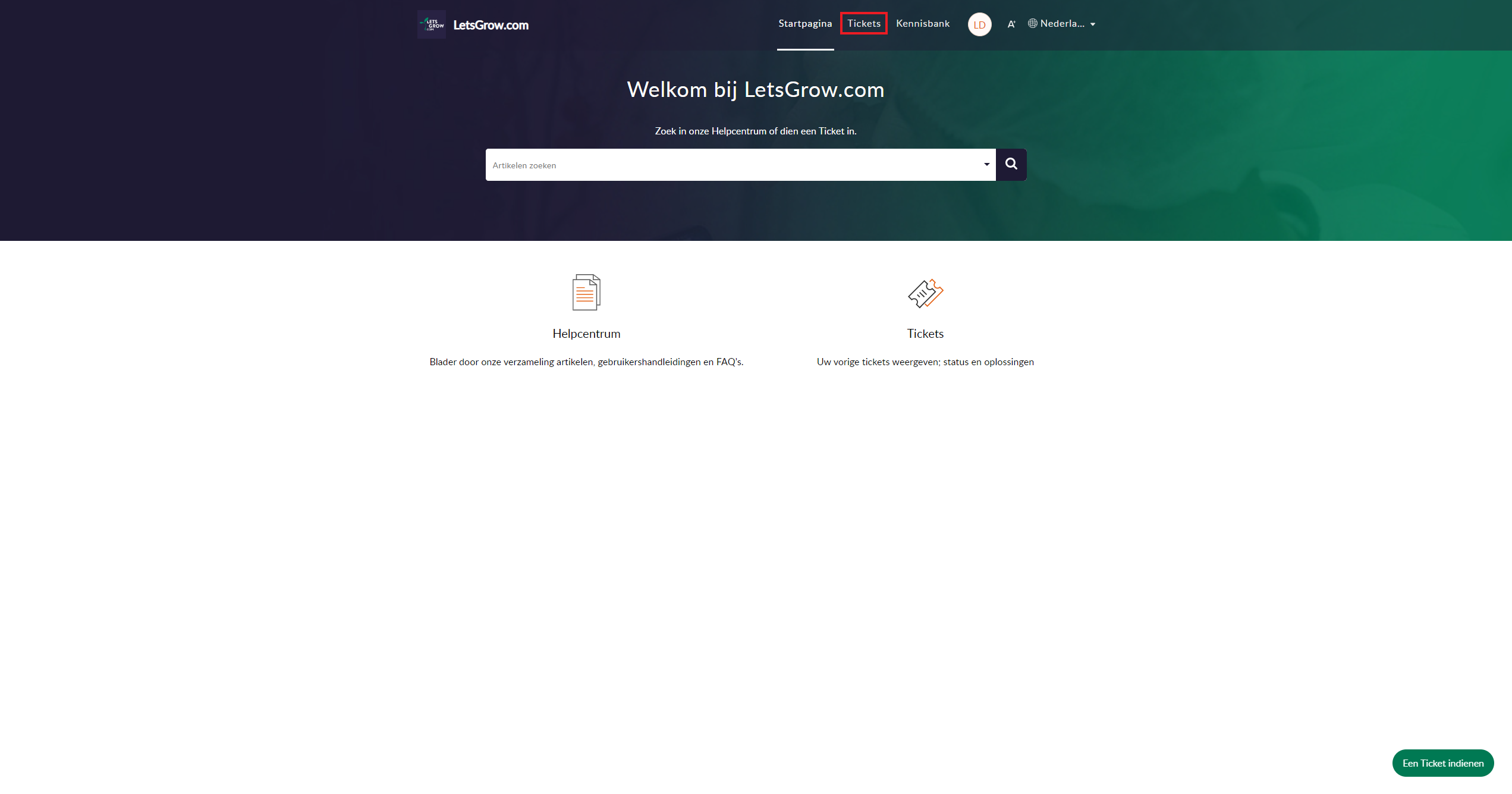 Om uw ingediende tickets (ook wel "tickethistorie" genoemd) te bekijken gaat u naar het klantenportaal van LetsGrow.com door op de volgende link te klikken: